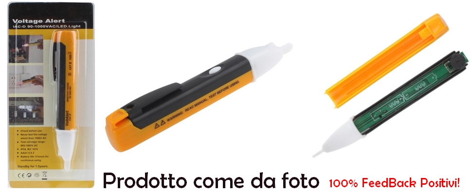 Cercafase elettronico rilevatore di tensione con Led e segnale acustico di facile utilizzo. Ideale per test su cavi di alimentazione, interruttori, prese a muro, scatole di derivazione, fusibili ecc… E’ anche consigliabile per piccoli lavori fai da te, effettua le tue riparazioni in sicurezza assicurandoti che all’ interno dei cavi non passi corrente. Completamente isolato! Metallo o altre parti conduttrici non esposti, impugnatura in plastica.