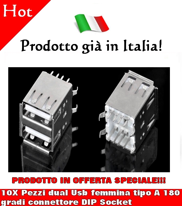 La confezione contiene 10X Pezzi Dual Usb femmina tipo A 180 gradi connettori DIP Socket.