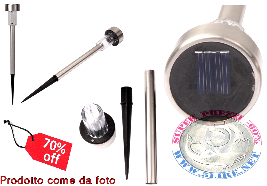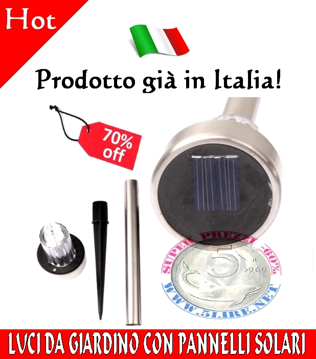 Luci da giardino a energia solare usate per illuminazione per esterni o segna passi.