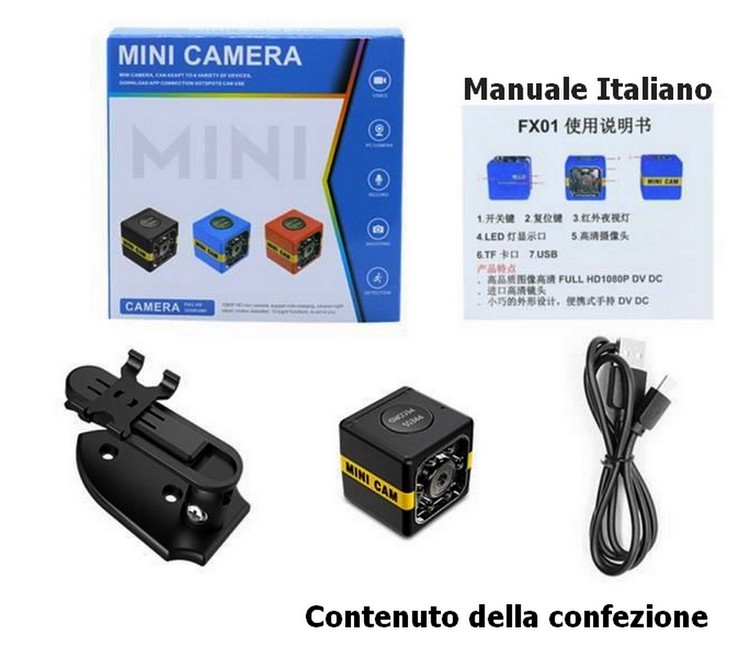Può scattare immagini di alta qualità e video HD anche in condizioni di scarsa illuminazione, ha un design quadrato e compatto. È abbastanza versatile da essere utilizzata come una tipica telecamera di sicurezza interna, come una dash cam, come un baby monitor o persino una mini cam adattabile al drone.