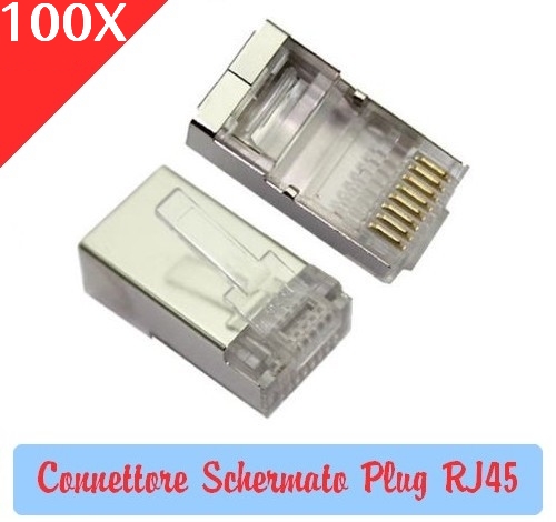Confezione con 100 pezzi Plug Ethernet Rj45 Schermati
