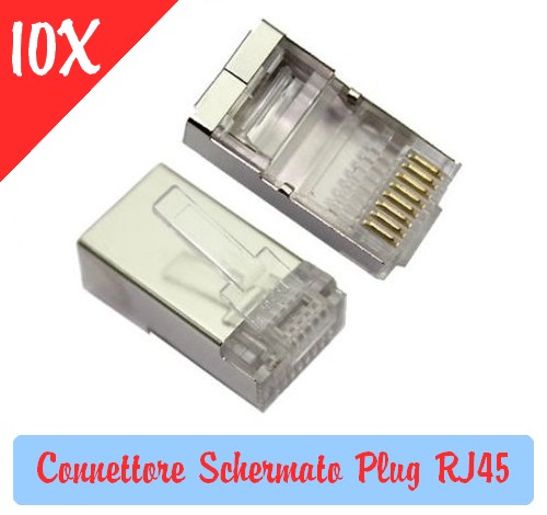 Plug rj45 schermato per Cavi di rete Lan, la confezione contiene 10 connettori Cat5 8P8C .