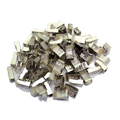 Plug Rj45 schermato di alta qualità e basso costo, viene utilizzato per il cavo Cat5. I connettori schermati permettono un cablaggio semplice e immediato, realizzati in plastica dura per una maggiore resistenza. Sono dotati di una schermatura in alluminio che li differenzia da quelli non schermati per una maggiore protezione,affidabilità e durata nel tempo. Tale schermatura fà si che la trasmissione del segnale sia più stabile e migliore.