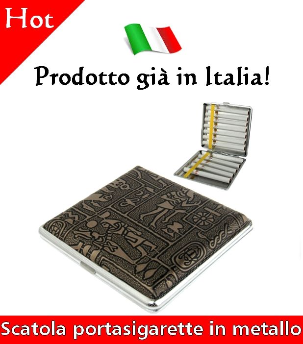 Scatola portasigarette in metallo elegante con disegno in rilievo. Questo portasigarette in metallo è una pratica custodia dove potrete comodamente metterci dentro le vostre sigarette che siano rollate con le cartine o dei classici pacchetti.