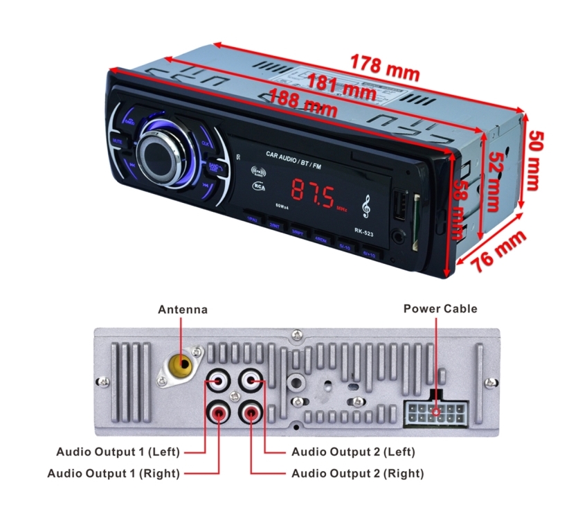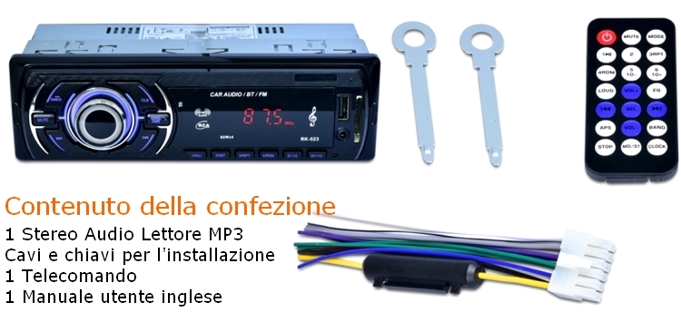 Stereo auto bluetooth con vivavoce, Radio FM e MP3. E’ un modello interamente digitale, senza meccanismo CD. Dispone di un sintonizzatore radio FM con visualizzazione automatica delle stazioni radio, capace di leggere file MP3 attraverso la porta SD / MMC / USB o collegando il telefono attraverso il Bluetooth sia per ricevere chiamate in tutta sicurezza ma anche per diffondere la musica salvata sul tuo smartphone in collegamento senza fili, in qualità audio stereo grazie all’ audio streaming.