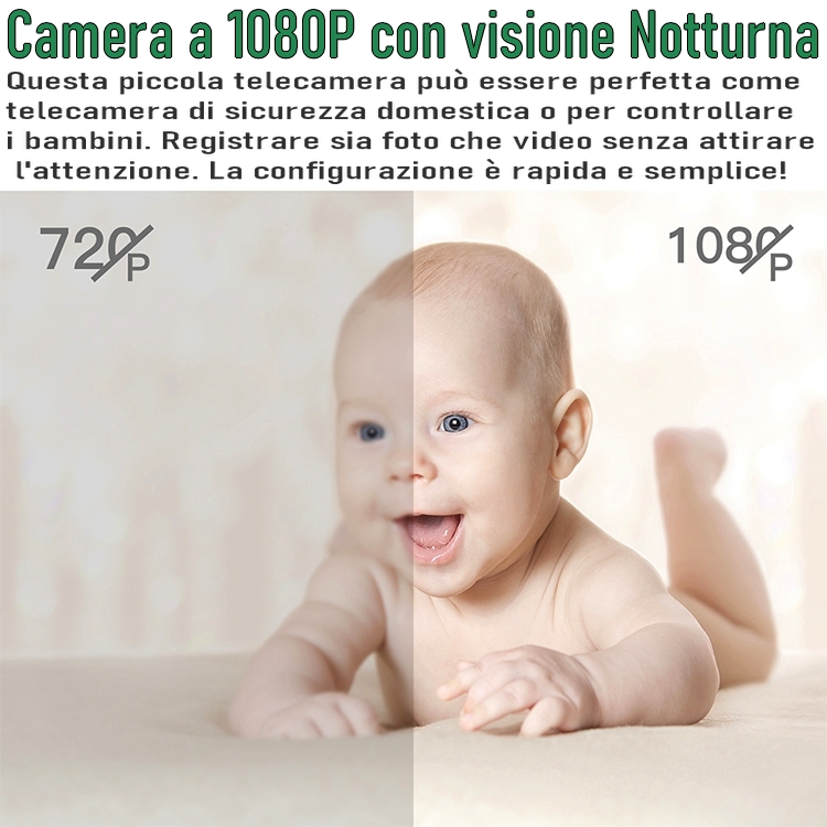 Videocamera spia WiFi con visione notturna infrarossi a 1080P HD. Vuoi vedere cosa sta succedendo a casa tua, come sta il tuo bambino e gli anziani quando sei lontano? Basta collegarla alla tua linea Internet è tutto questo sarà possibile! Installazione semplice e intuitiva tramite APP in dotazione.